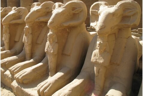 Centenares de Esfinges cuya antigüedad se estima en 3.500 años han sido recientemente restauradas. Estas majestuosas esculturas con cabeza de Carnero y cuerpo de León, descubiertas allá por el año 1949, flanquean la Avenida de las Esfinges, con una longitud de 2,7 kms y una anchura de 76 mts, esta empedrada calzada está considerada como un autentico museo al aire libre.