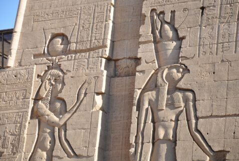 Construido sobre el lugar donde se produjo la gran batalla entre Horus y Seth, el contraste entre luces y sombras, simbolizando la batalla entre el bien y el mal, entre la luz y la oscuridad, caracterizan uno de los templos mejor conservados, Edfú. Su buen estado de conservación te permitirá entender mejor la organización de los templos Egipcios.